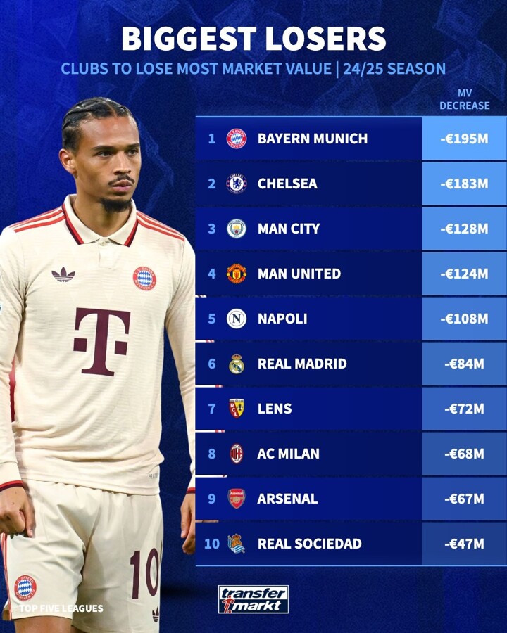 ⏬Transfermarkt: BIGGEST LOSERS clubs to lose most market value in 24/25 season Leave a Comment / Sport / By Admin ⏬transfermarkt: biggest loser clubs to lose the most market value in 24/25 season Top 1