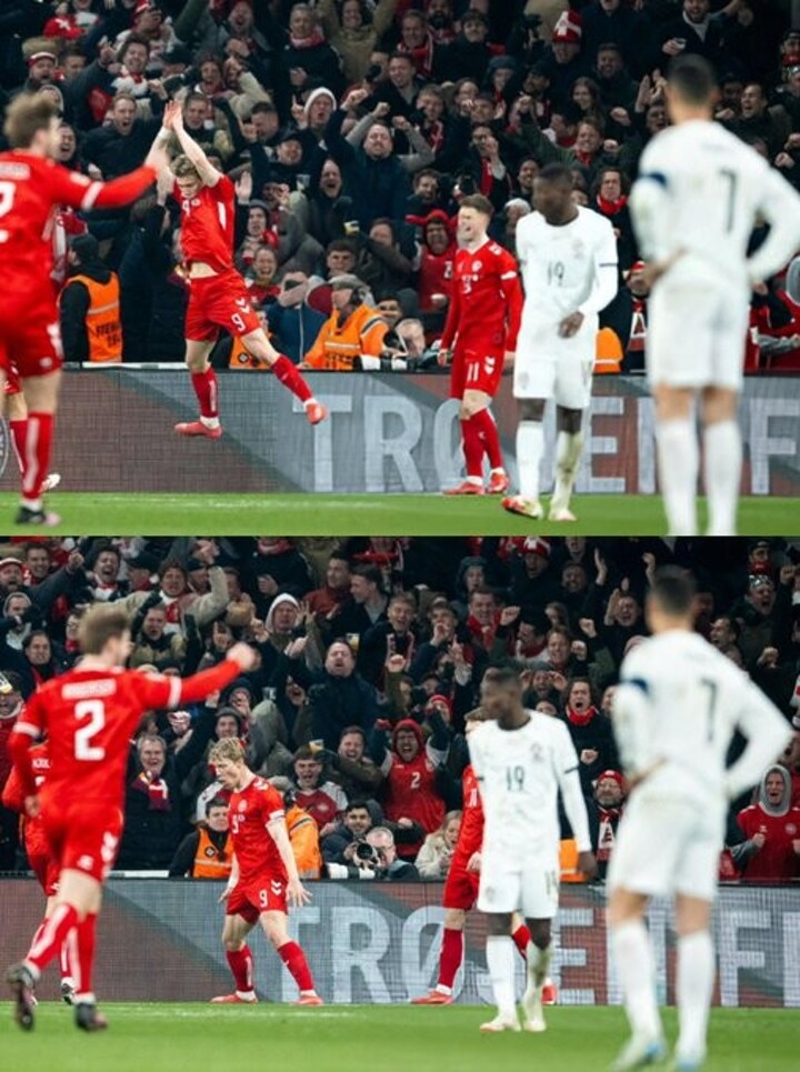 Cristiano Ronaldo's reaction was noticed after he saw how Rasmus Højlund copied his target celebration during Portugal's Nations League collision against Denmark.