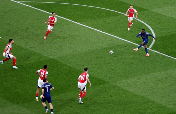 Gabriel Martinelli came close with an attempt at volley after a cross from the left at the end of the first half.