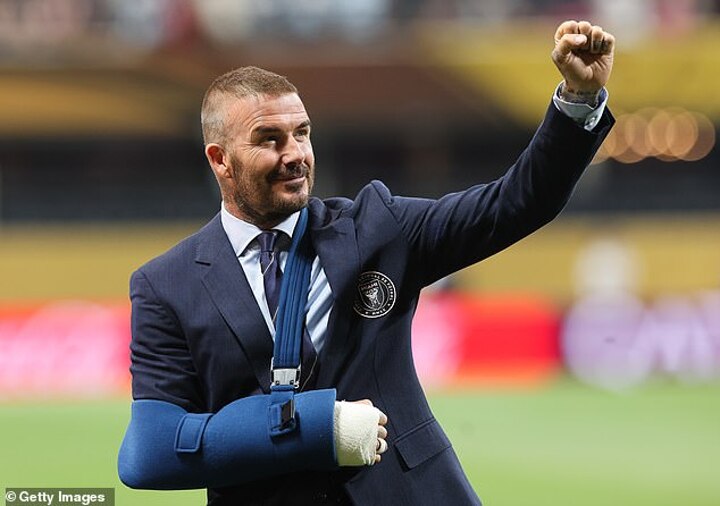 Beckham, who is co-owner of Inter Miami, was seen in the Mercedes-Benz Stadium with a blue pendulum with his right hand encapsulated in a gypsum lock, but appeared in a good mood while greeting smiling and supporters for the game.