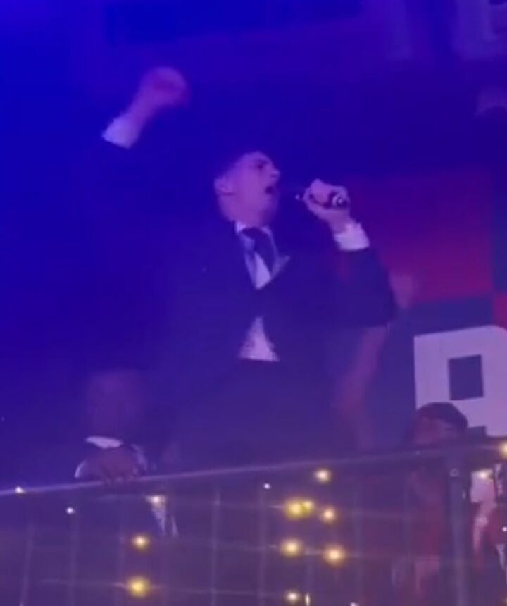 Henderson, who appeared on a balcony, took the microphone and led supporters in revised X-rated version of the song 'Waka Waka' by Shakira.