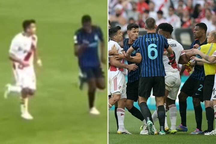 The tensions then cooked at the end when River Star Acuna, furthermore furiously by the referee's decision to send teammate Gonzalo Montiel, in the squared of Inter Defender Dumfries.