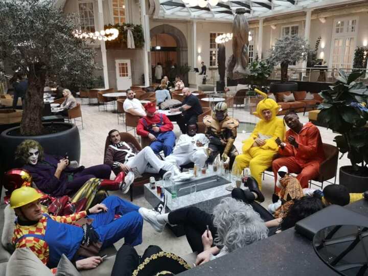 Caleb Okoli and Stephy Mavididi were among the first-team players pictured, while others were well disguised as characters including Iron Man, the Joker and Mario.
