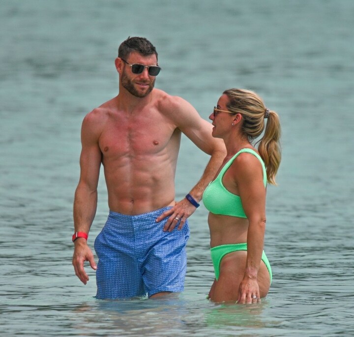 In the meantime, wife Amy Fletcher had no worries because she worked an impressive brown in a light green bikini.