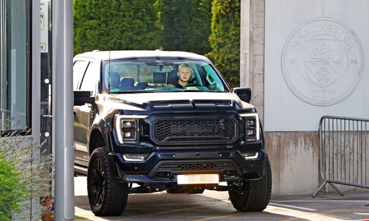 Haaland, 25, was spotted in the massive Ford, usually seen on the wide roads of America, when he left the Etihad Campus training group of City around 6 pm on Monday.