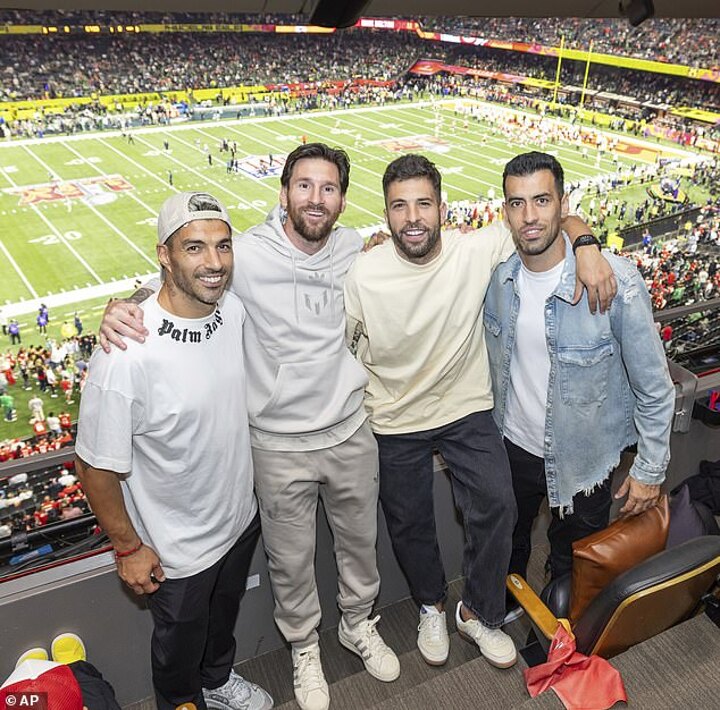 Messi leads ex-Barcelona boys’ night out at the Super Bowl in luxury suite