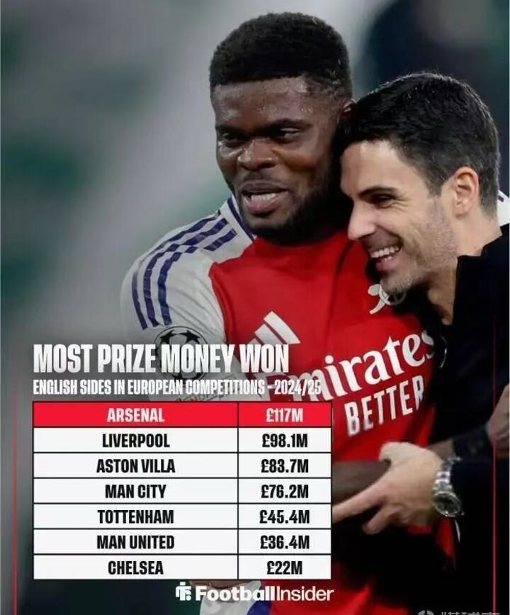 According to the statistics released today, Arsenal earned the most prize money among all English clubs in European competitions during the 2024/25 season. The Gunners brought in £ 117 million and found all other Premier League teams at the top.