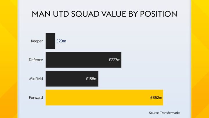 In the meantime, their midfielders have less than half of the value of their attackers, at £ 158 million, and further emphasize the need to bring other parts of their team to the level of their front line.