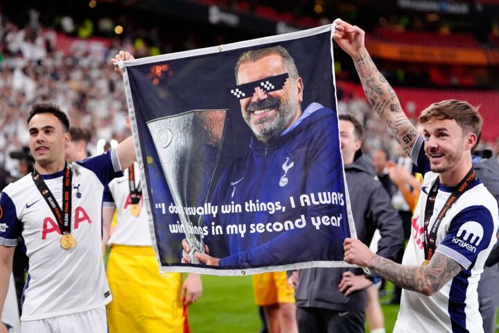 The Europa League winners of Tottenham were quickly off the line with a huge sign of support for Ange Postecoglou.