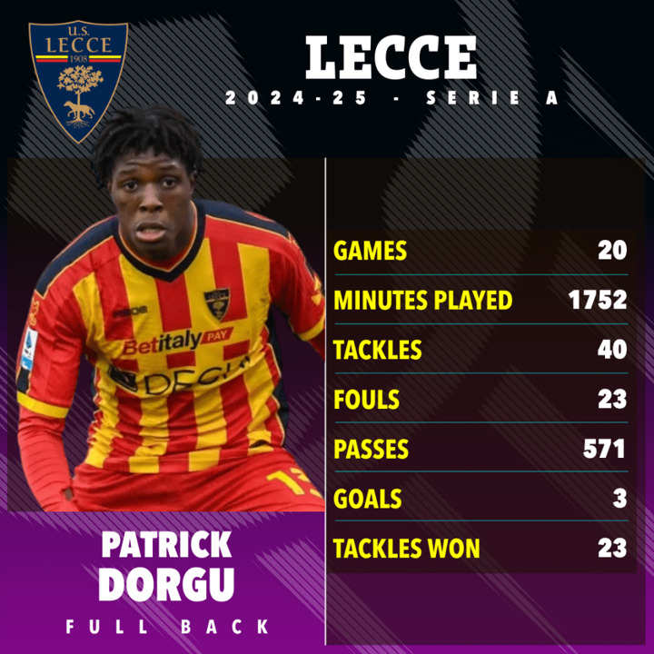Manchester United are in talks to sign 20-year-old Lecce left-back Patrick Dorgu.