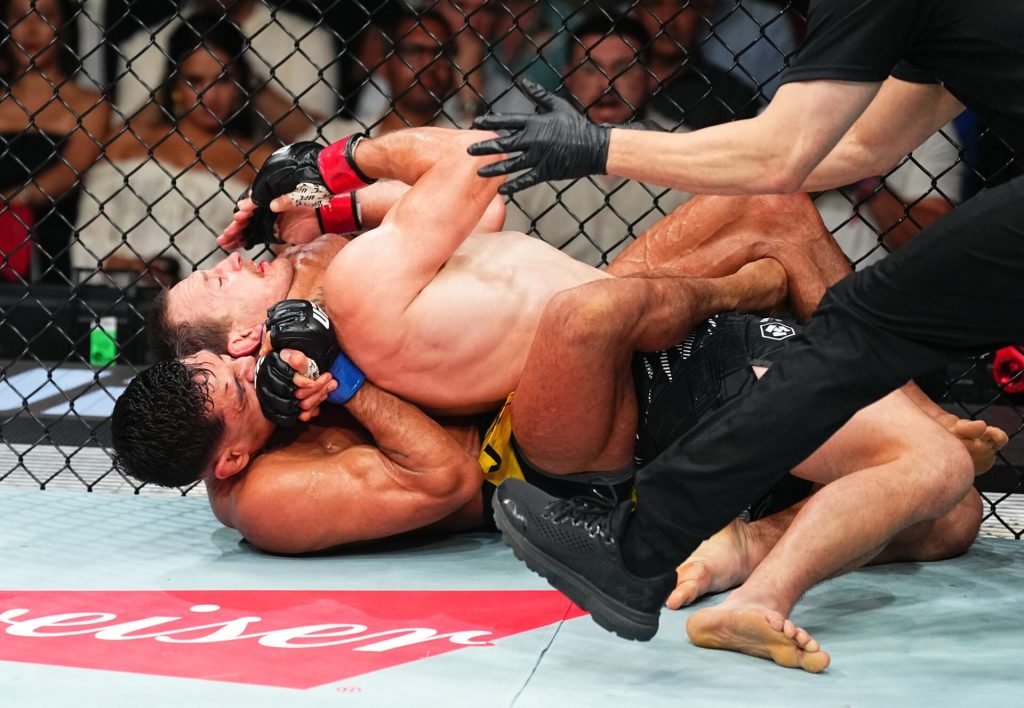 The fight seemed to go his way after he had dropped Santos in the first round, but the tide began to turn in the round two, and Jack Jenkins finally dropped in a third round choke loss on UFC 312.