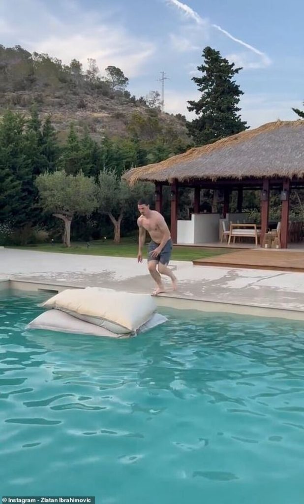 Former Manchester United star Zlatan Ibrahimovic has shown that his power remains intact by performing a spectacular swimming pool stunt.